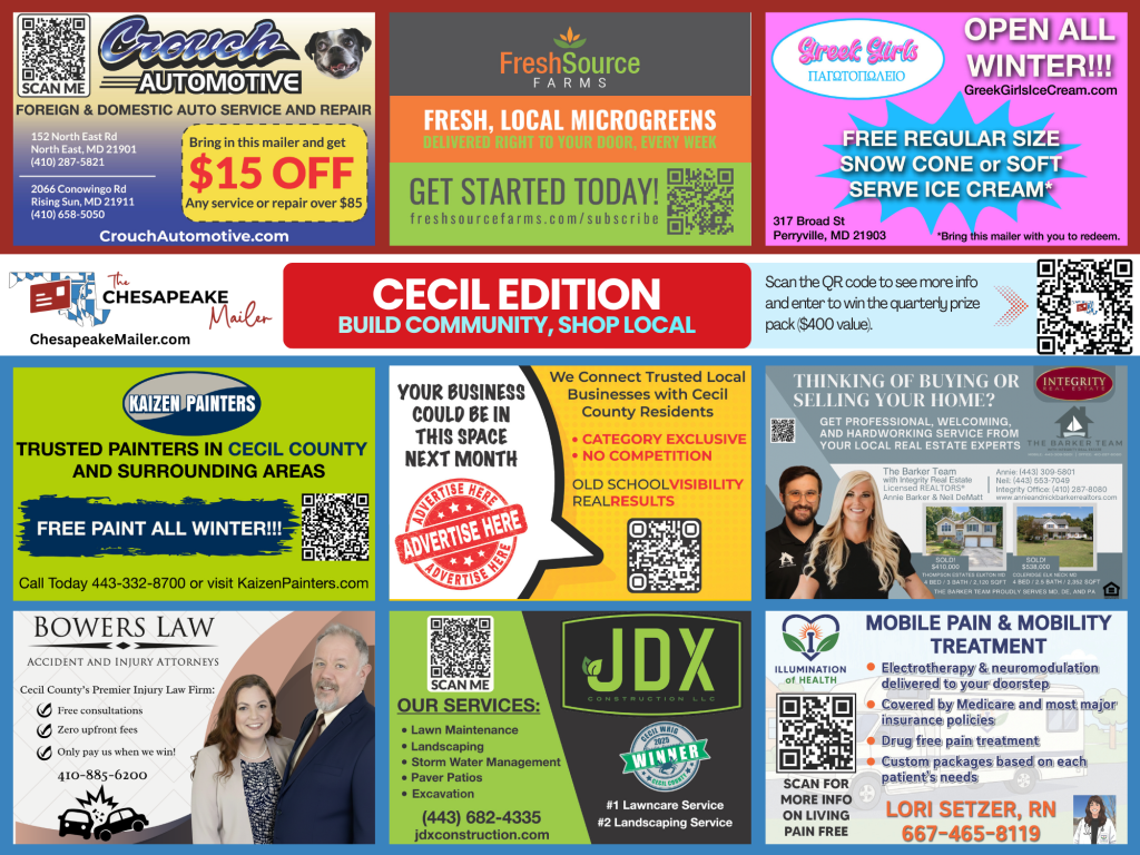 Advertise on our Cecil County Mailer and Reach 5,000 Local Customers Monthly!