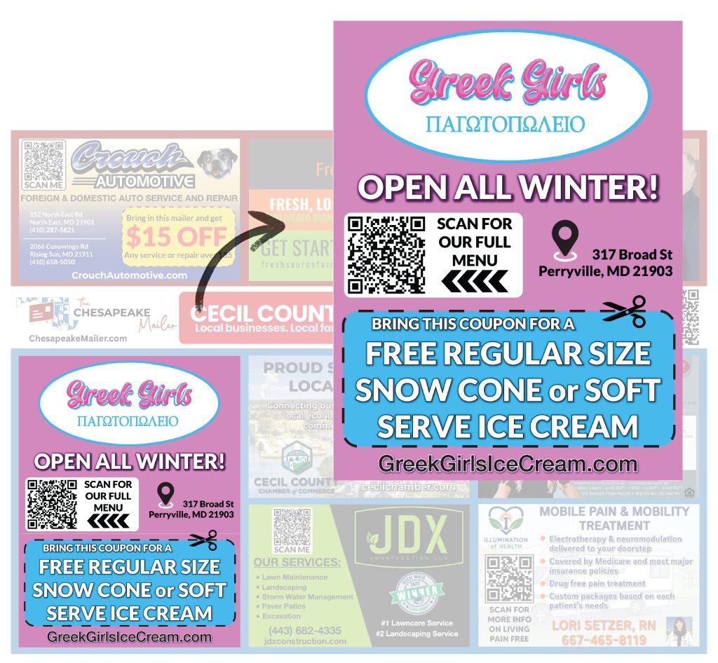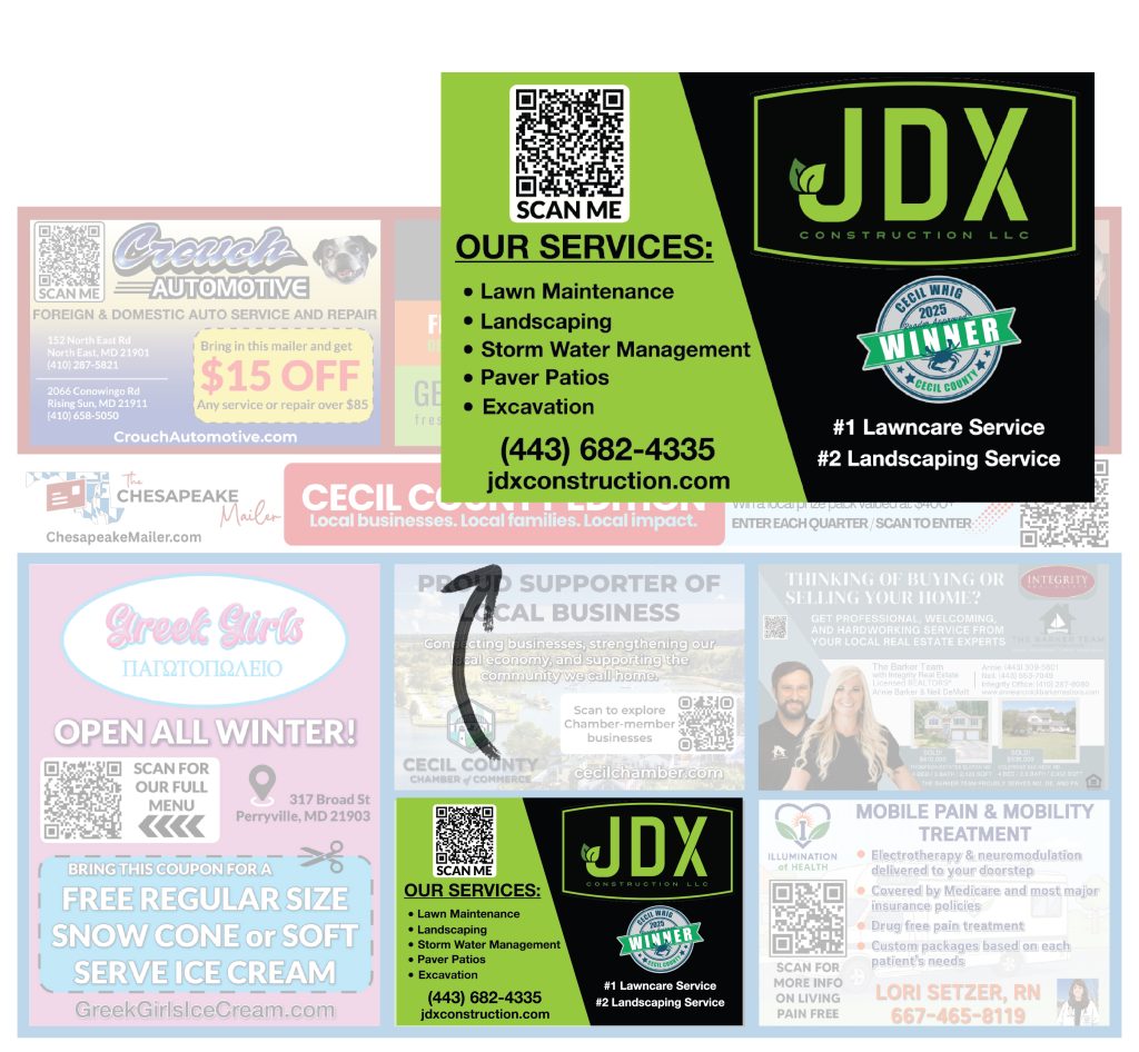 Promote your business in Cecil and Harford Counties on our powerful shared mailers that drive real local traffic, without breaking the bank.