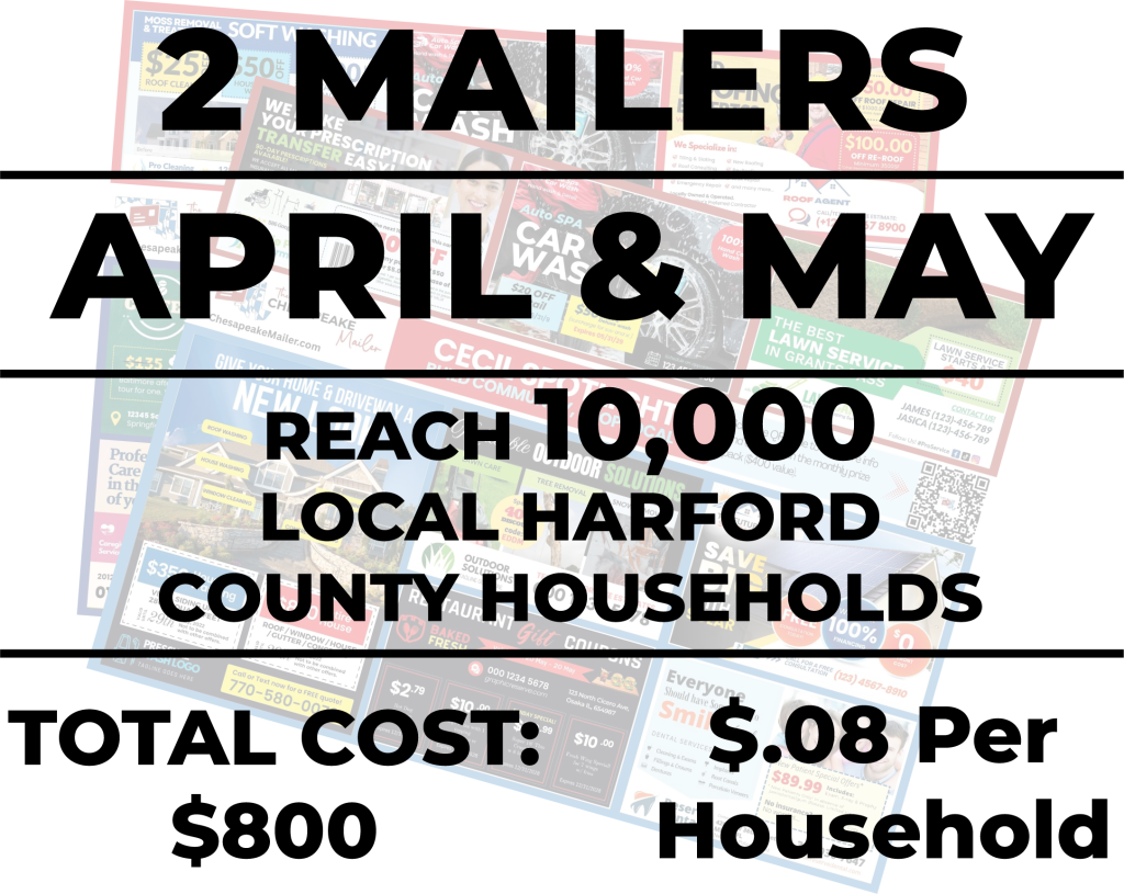 Get your business into 10,000 local Harford County homes for $.08 a household.